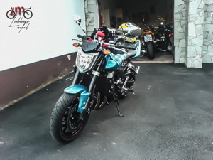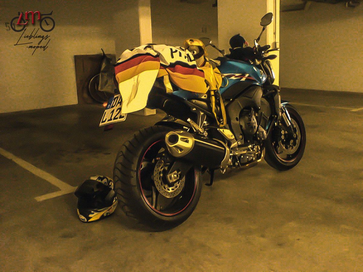 Schiebende Gewalt aus der R1 umgeben von einem Handling, das handeln läßt - von Bremsen, die bremsen - von Reifen, die greifen.
